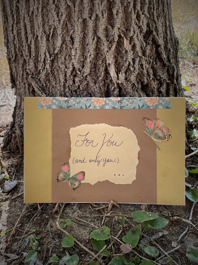 Following my curiosity, I decided to write five letters to sprinkle around the city. Nine months later these five letters were born. I took an artistic approach. After all, if someone is to find a treasure it needs to look pretty and enticing! I loved the idea of finding a vintage letter written to a distant lover. I crafted each letter with a vintage style using old book pages and homemade tea-stained paper. I formed the words of each letter to be heartfelt yet general enough to share with a stranger.
